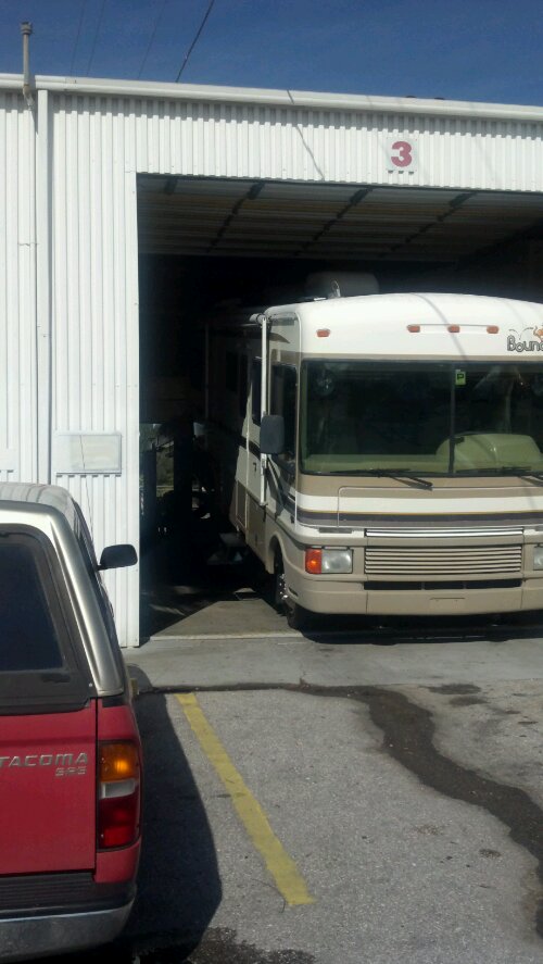 Even though we purchased the RV “as-is”, Rick offered to have the dealership pay for half of the jack repair since he wished he had checked the back and not only the front jacks. The spring that was removed was the wrong one and covered up the original spring that was broken and still firmly attached. There’s no way the dealer could have caught this during the inspection, so I was really happy they helped us out so much, so soon and covered half the cost. The RV Shop had to put the Bounder on a lift to completely remove the rear jack assembly so they could remove the original spring stub. While I was at the RV shop, Alice was stuck at the mattress store and the salesman got to hear about some of this crazy story I’ve gotten us into!