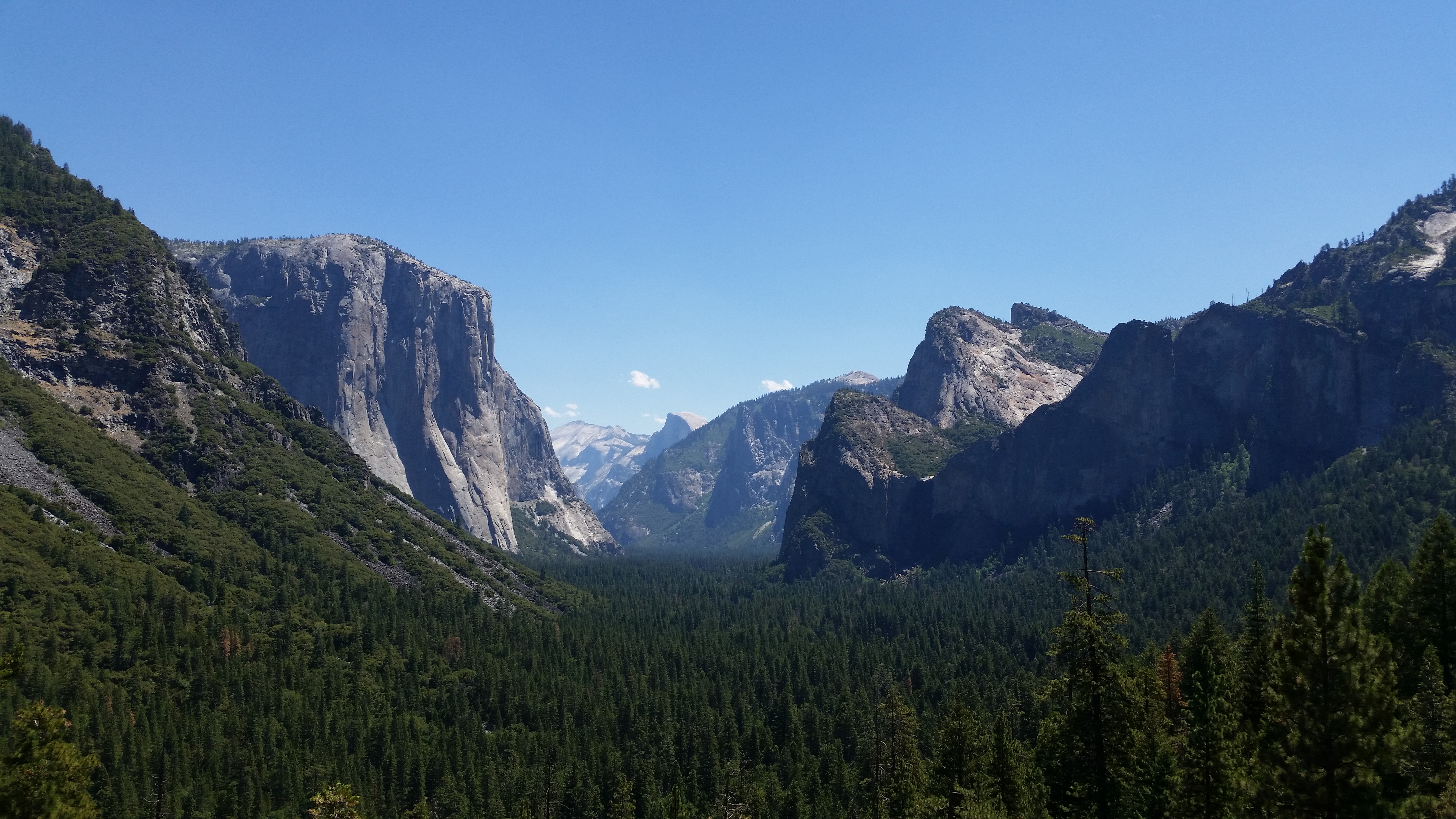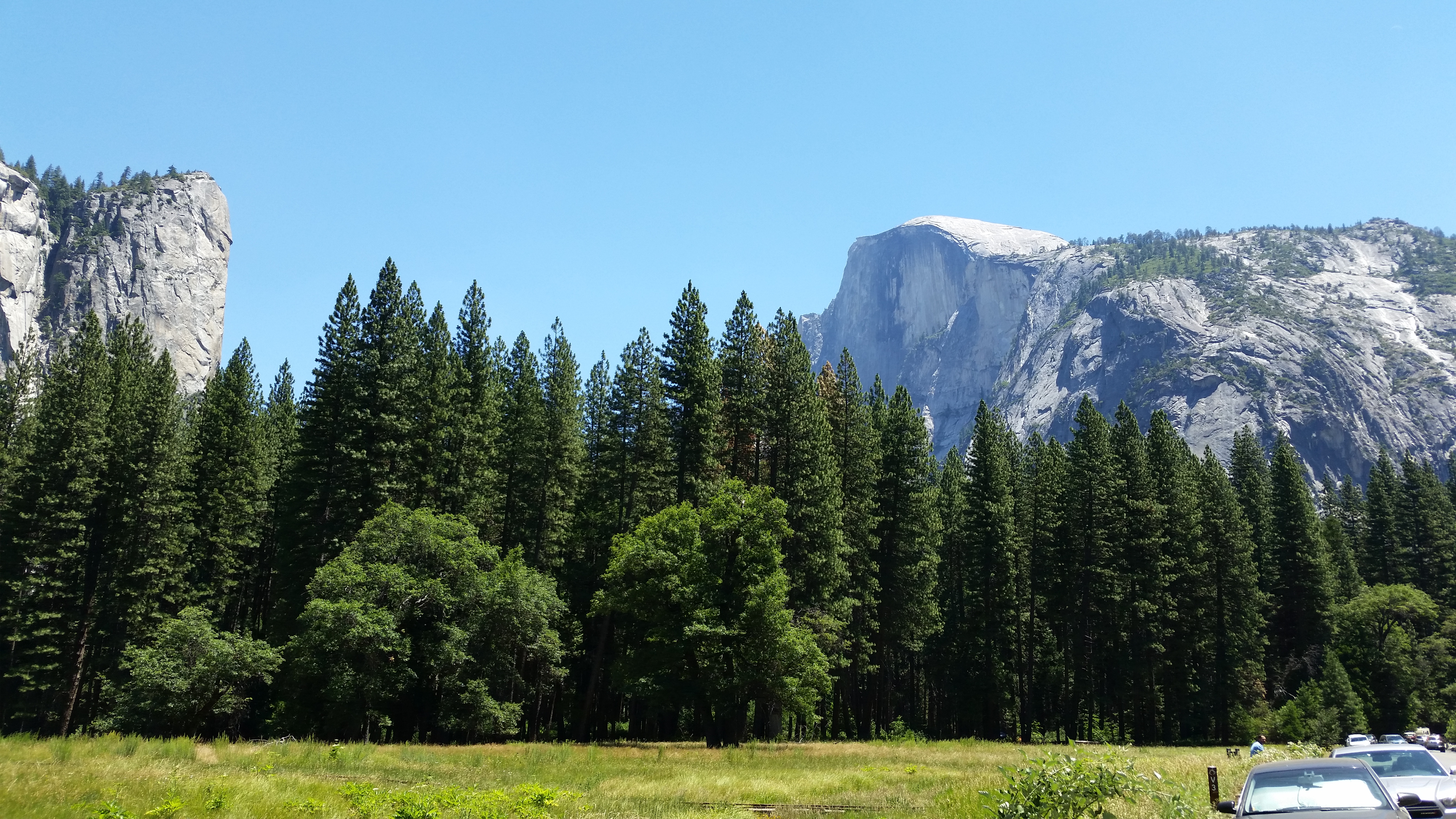 you can’t see it from here, but that narrow looking valley is very, very wide with roads, large parking lots, recreation sites, campgrounds, stores, restaurants and other national park facilities! The solid Granite mountains are so huge they dwarf everything else.