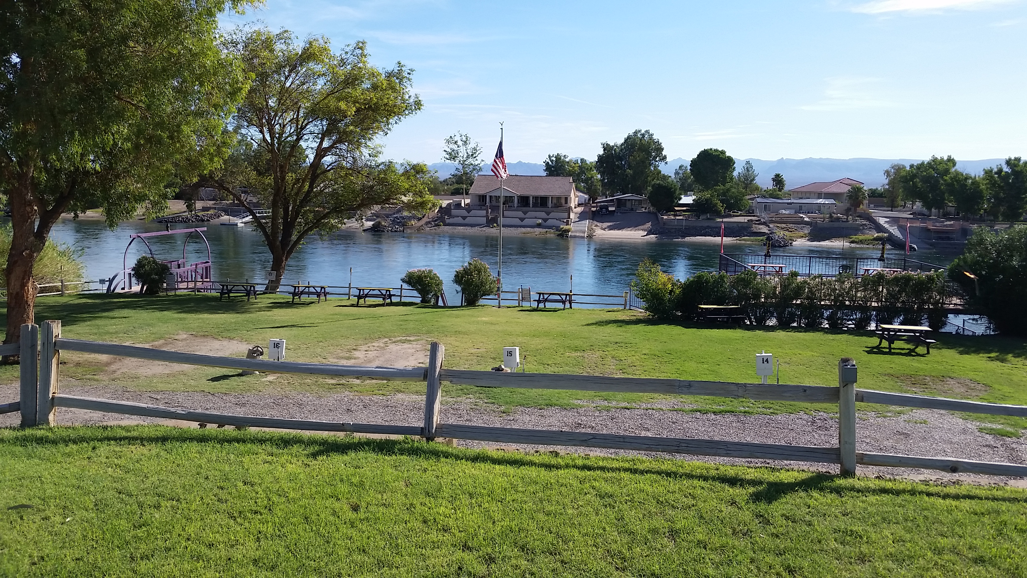 We spent much of the day waiting for the RV repairs in Mojave, so we only made it as far as Needles instead of Williams. Because of that we literally stumbled upon Fenders RV Resort on the banks of the Colorado River. It was late, dark and we couldn’t find any places (with hookups for A/C) after driving past Fenders. From the road, in the dark it looked a little iffy, but we came back and hooked up. In the morning I was shocked to see how nice of a place this was.