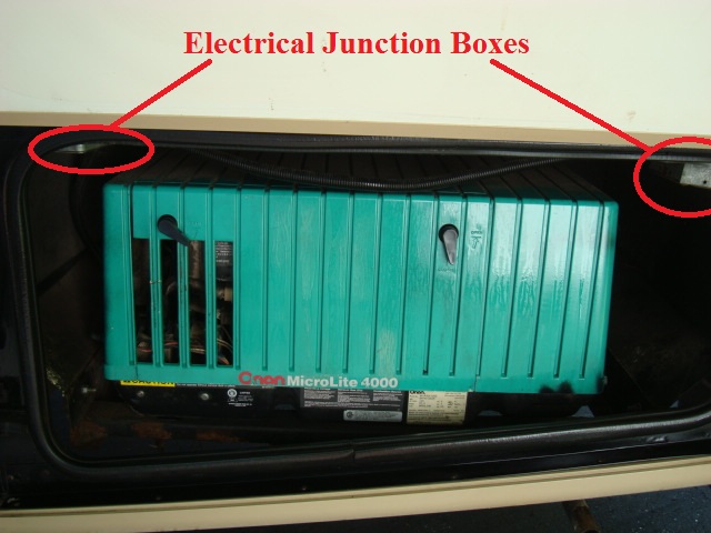 Once I received the new unit I began reading the instructions. Pulling out the old unit I noticed some really goofy wiring with an extra electrical junction box and a lame splice job that was going to made hooking up the new unit very confusing. After looking at it a while I realized a previous owner had replaced the generator with a used one that had a really short set of house wires. They added the extra j-box since the generator wires couldn’t reach the original j-box. I tore out the extra box and wires and then my son helped me get the new unit in and I bolted it in. I was able to get the wiring back to the original factory j-box and connected properly to the house wiring. Getting the wiring right ended up eliminating a problem with the microwave shutting down frequently when running the generator, now I didn’t have to worry about replacing the microwave!