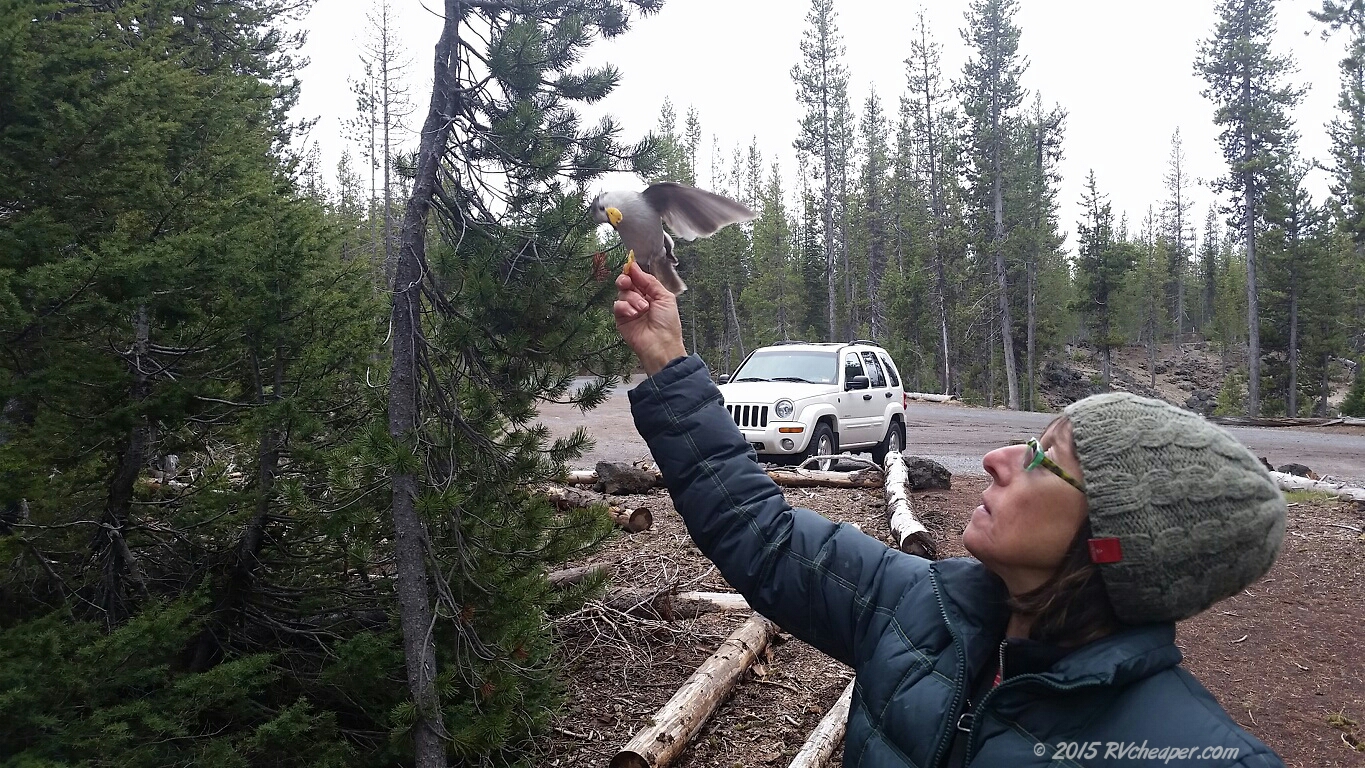 Get your book and hit the trail!The view of Bend from Pilot ButteNo idea who’s truck, I just had to capture the view beyond 🙂No tourist stop is complete without a plaque 🙂Took a trip to Hosmer Lake, awesome place!Looks like lots of snow to me, but Mike said it’s way short this year.Who could resist giving these guys some scraps!one way to keep them from stealing from AlvinWe spotted a Gray Fox on the way back from Hosmer Lake.Brother Mike & Sister Michelle partaking in the ancient drinkI don’t remember what Alice was drinking, but I was enjoying mine 🙂Mike & I sampling the good life…Three creeks, not sure I can pick just one!Some food prep and drinking the night before the partyYes they are prepping some food 🙂