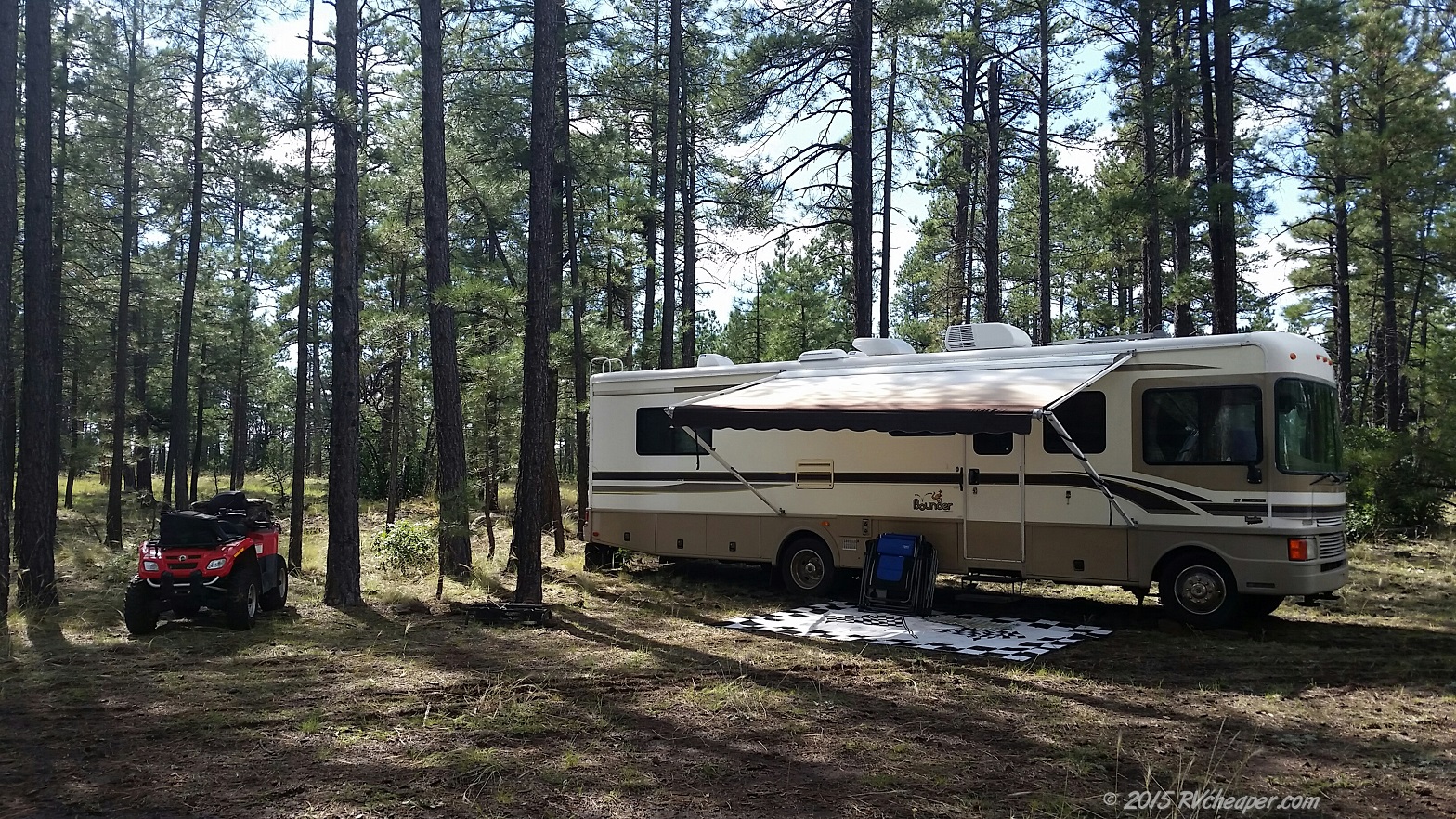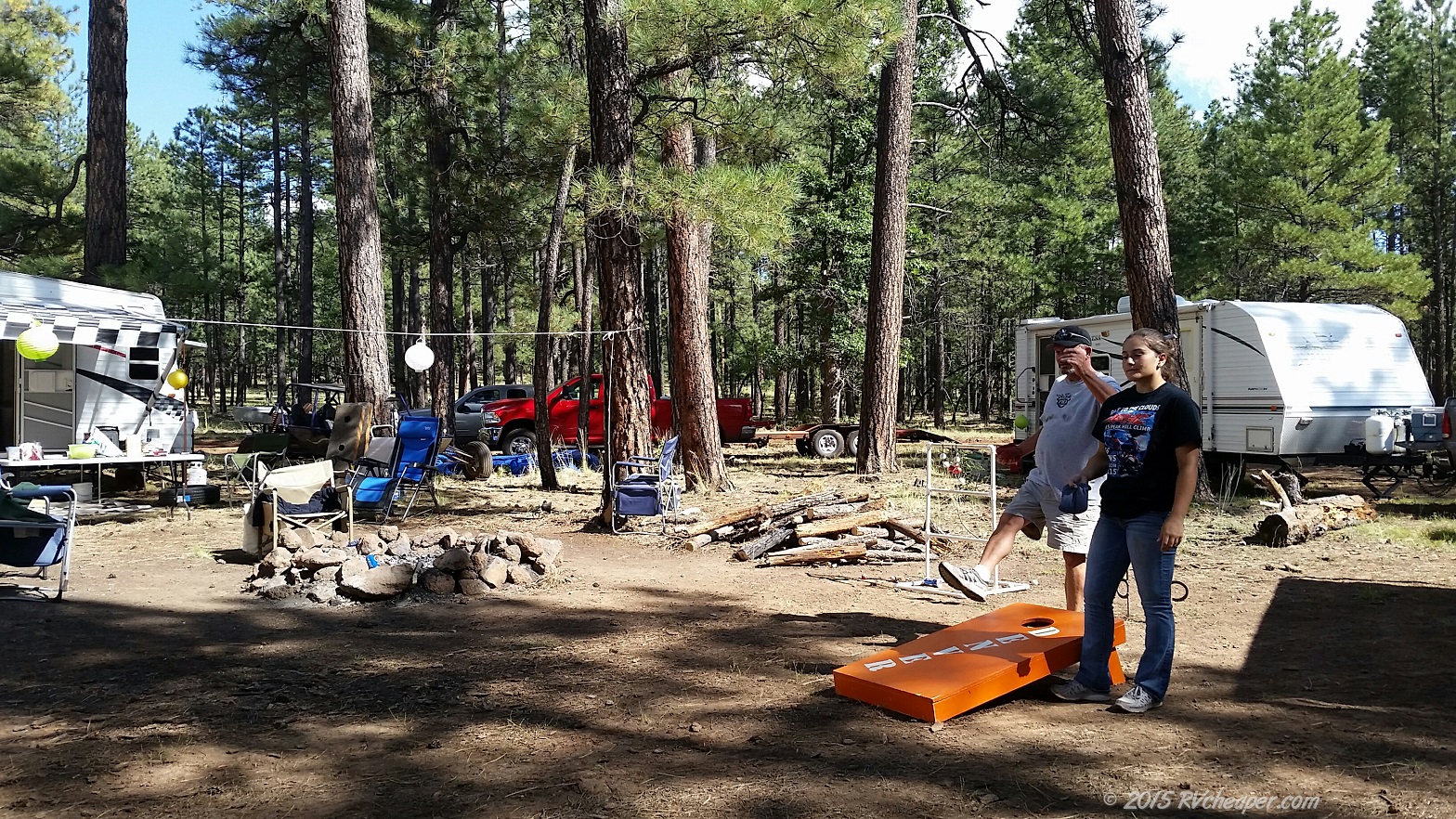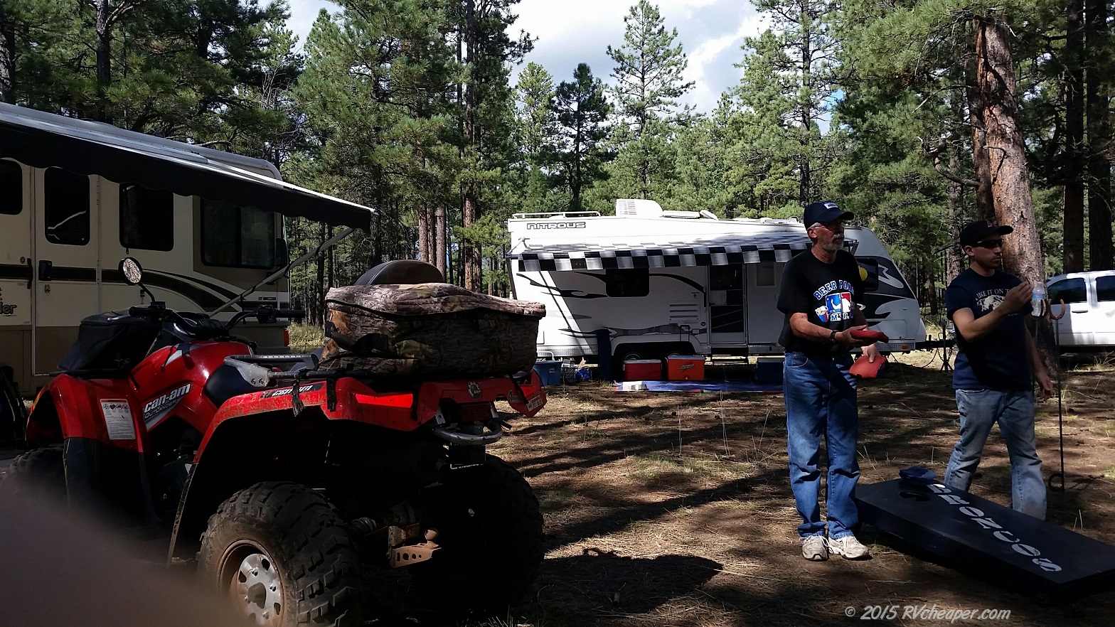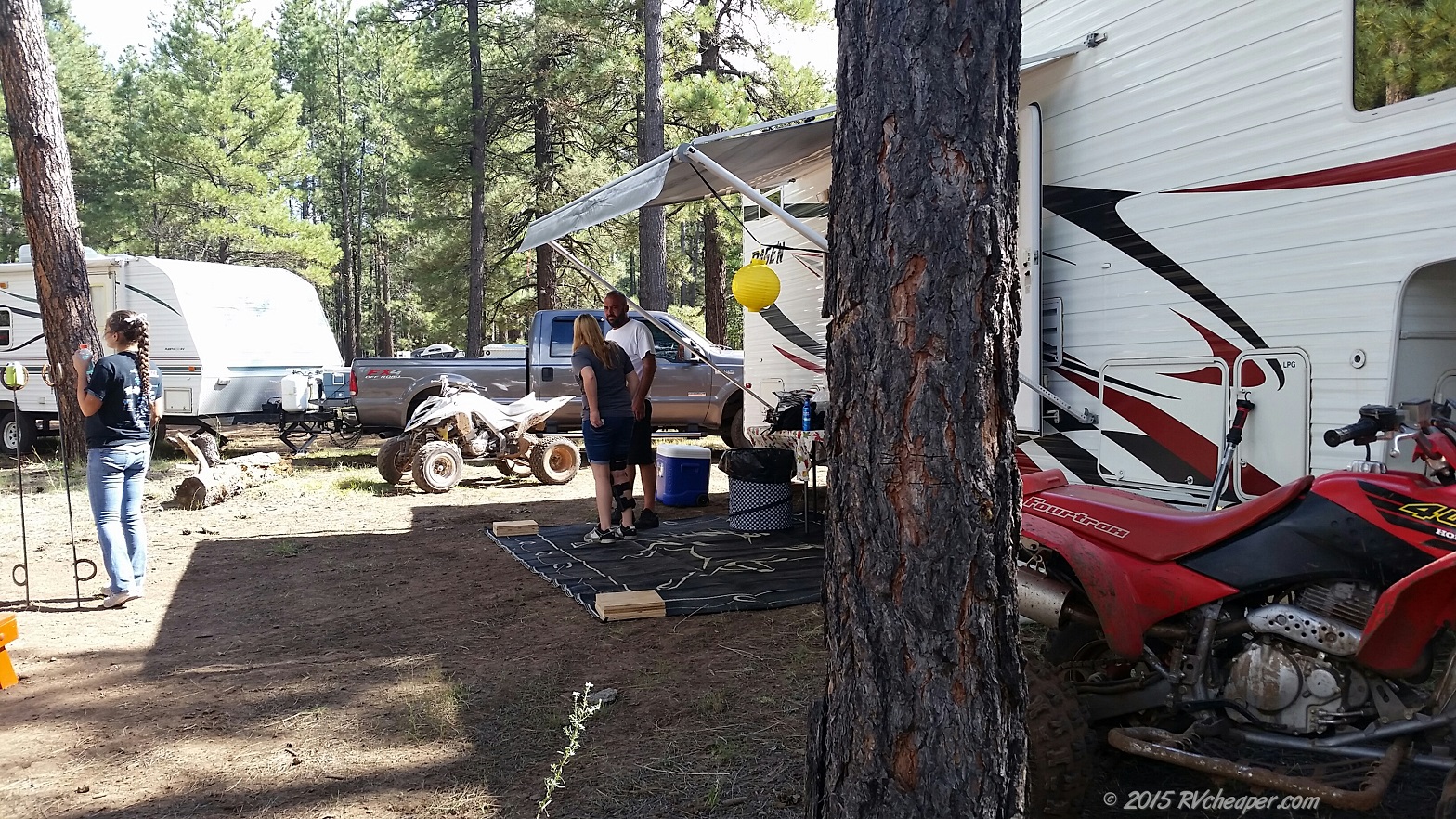 This year’s Labor Day camping trip became a week long boondock event with several friends up on the Mogollon Rim. We went up on Wednesday to get early pick of campsites. Once we got there we did see a lot of RV’s that got placed the weekend before to hold their spot but, we still got the first choice location Dan & Mel scouted weeks back. The Mogollon Rim area is a great get-away in the summer with 75-80 degree days when Phoenix is 110 or above!