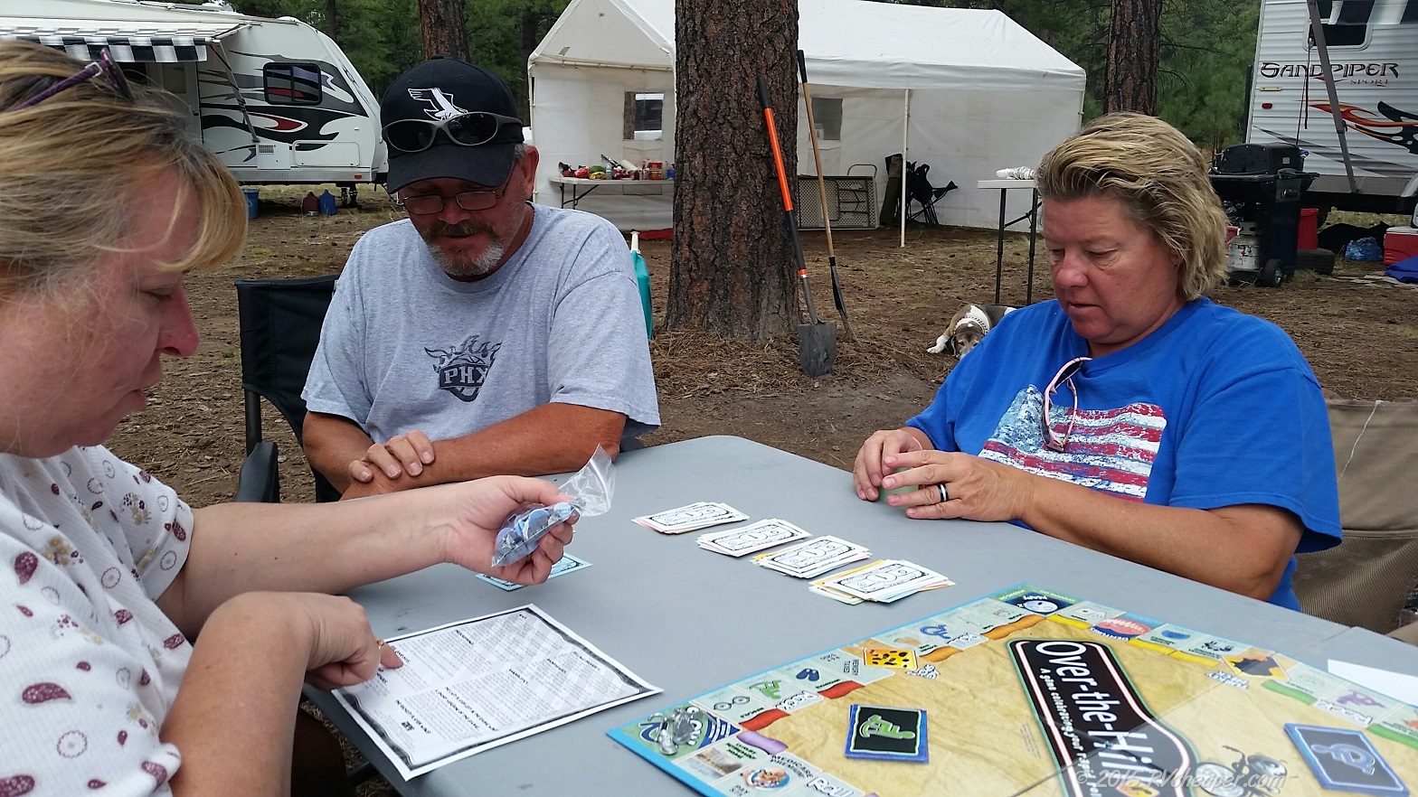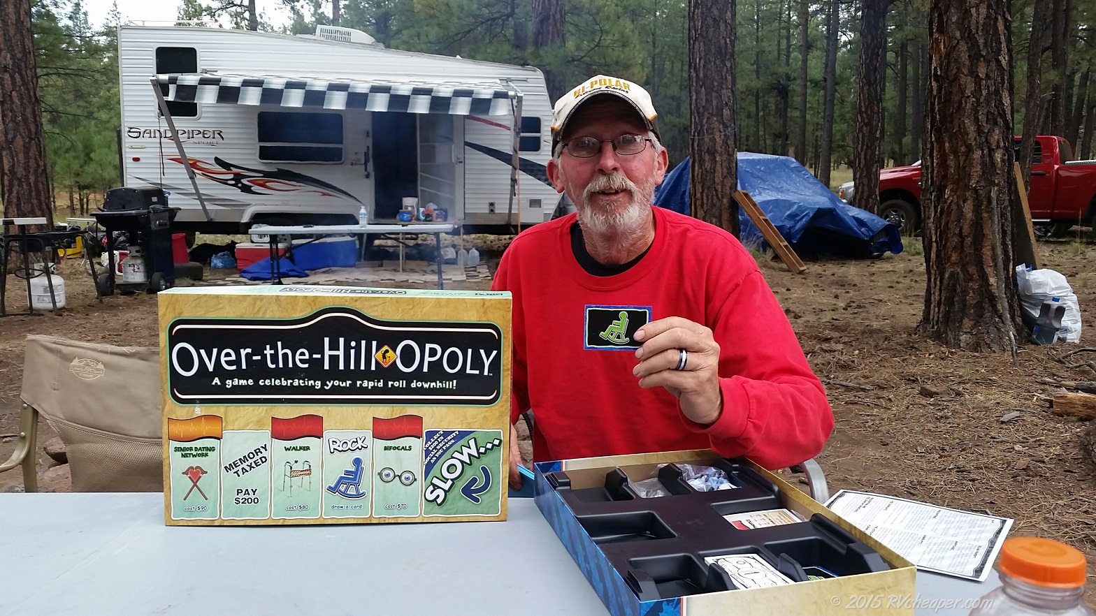 Most of the crew left on Labor day but three of us couples stayed until Tuesday to avoid the holiday traffic. Also makes it much easier to get a turn a the dump station. The next game we played was Over The Hillopoly, a different take on Monopoly. Dan being the senior camper got it for his birthday a while back.