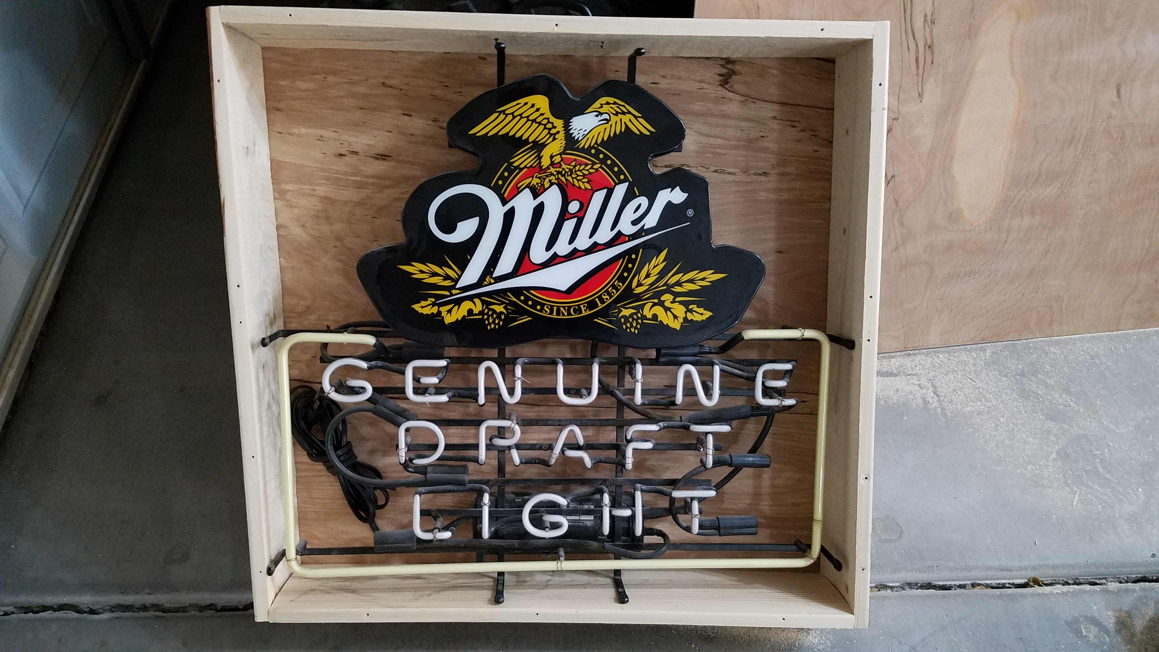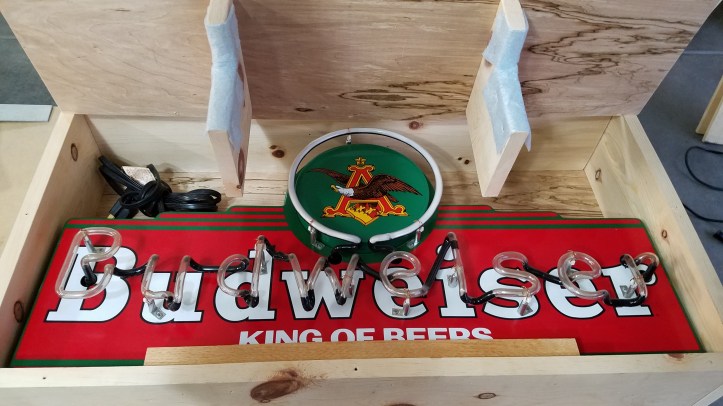 We managed to get the basement, stairwell, hallway, downstairs bedroom and bathroom painted, but getting real tired of moving things around to continue painting. Time to pack some more and get it to storage, so I decided it was time to pack my precious neon signs. Amazingly I scrounged up a little creativity from my dad to create some wooden boxes to protect and store them. I’m not sure if we will have a place to put them but they are one of the things we are holding onto, for a while at least…
