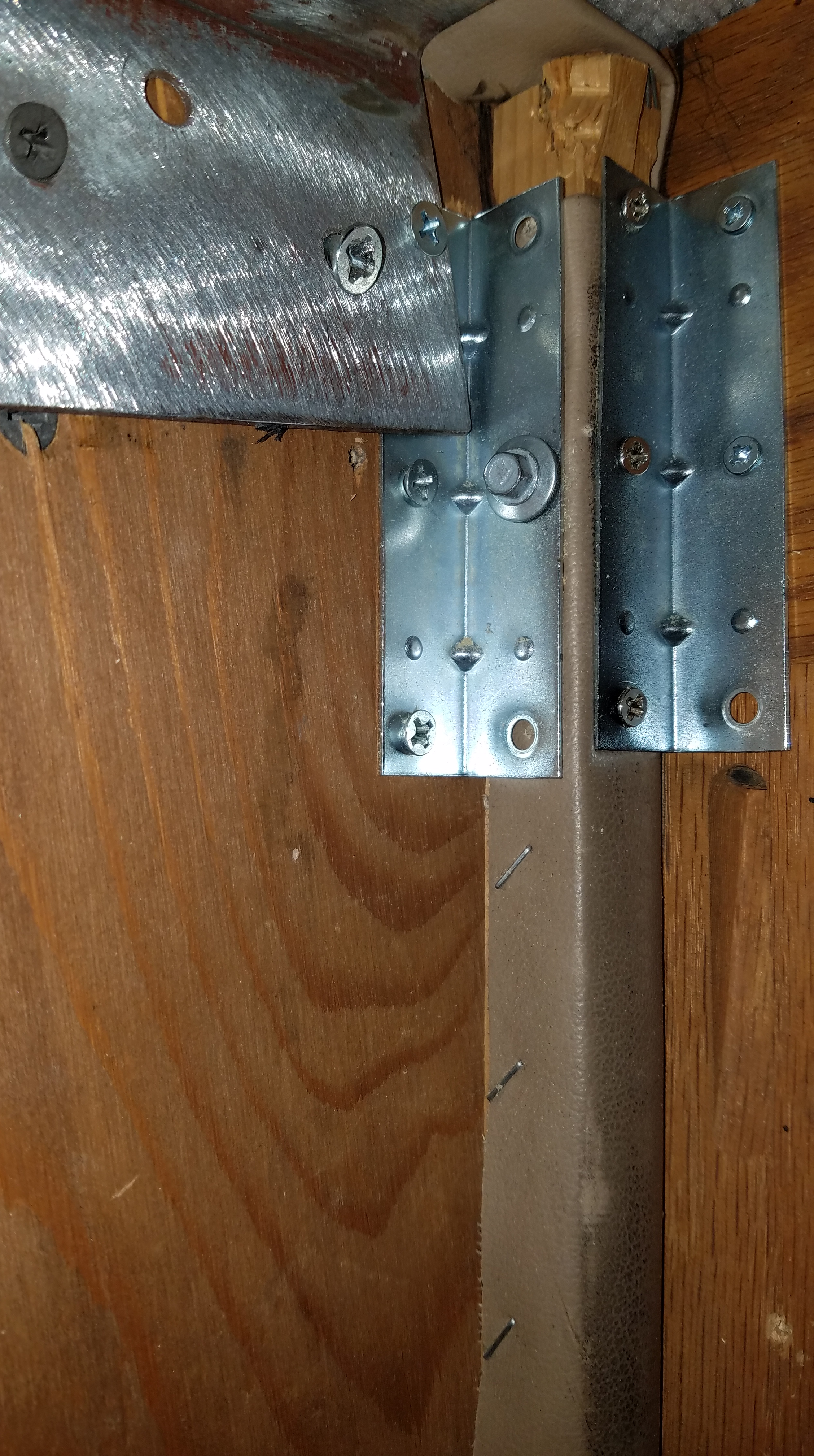 The key to making it work was having the hinge about 5″ below the ceiling. And the flat panel had to be at least a 1/2″ below the hinge so I could swing the flat panel all the way horizontal without hitting the ceiling or the cabinets. This turned out to be the simplest way to do it which is why it took so long for me to figure it out. If there’s at least one hard way to do something, I’ll try them all before I find the easy way! 🙂