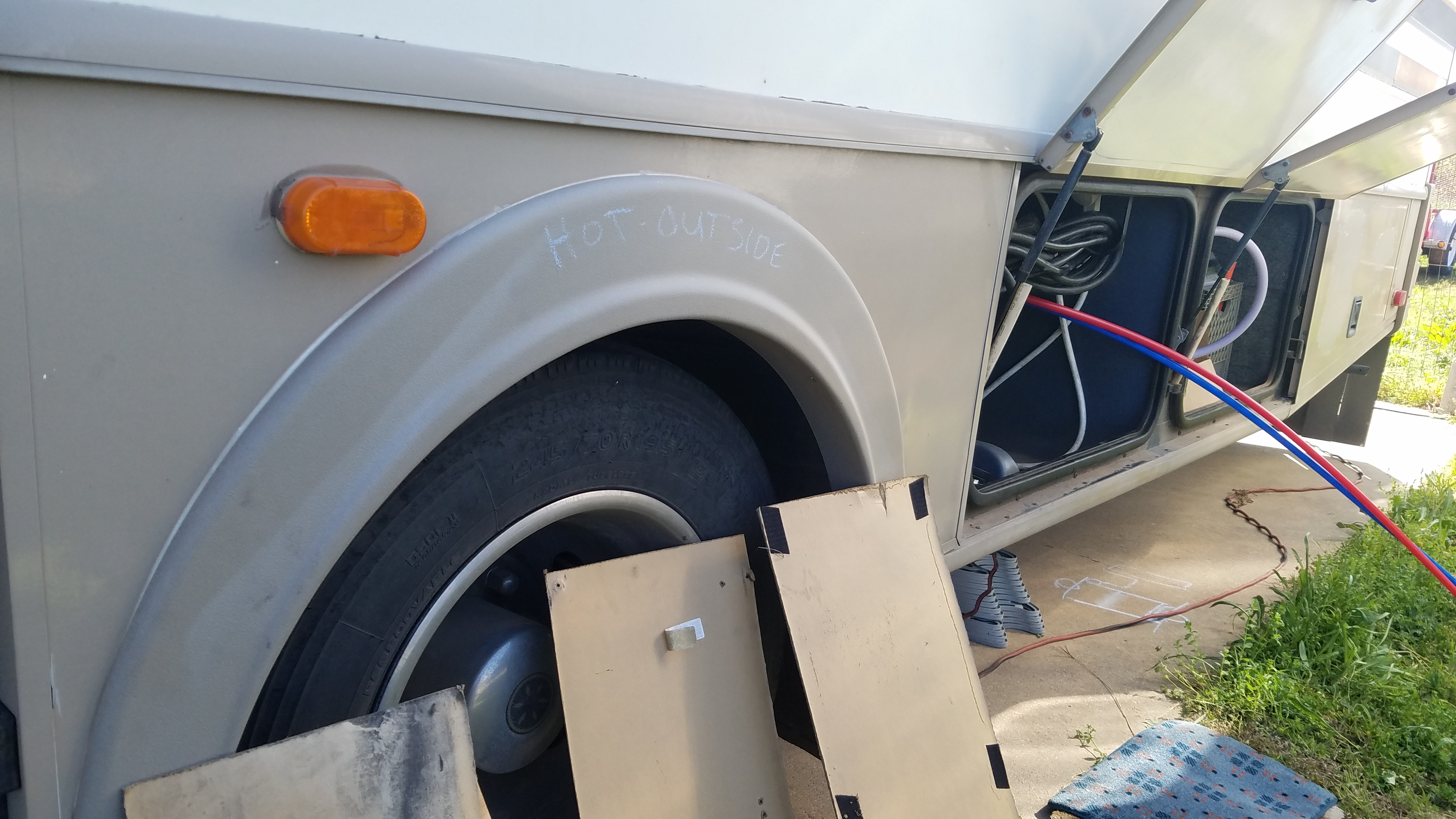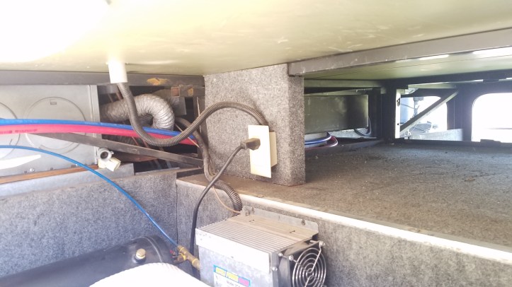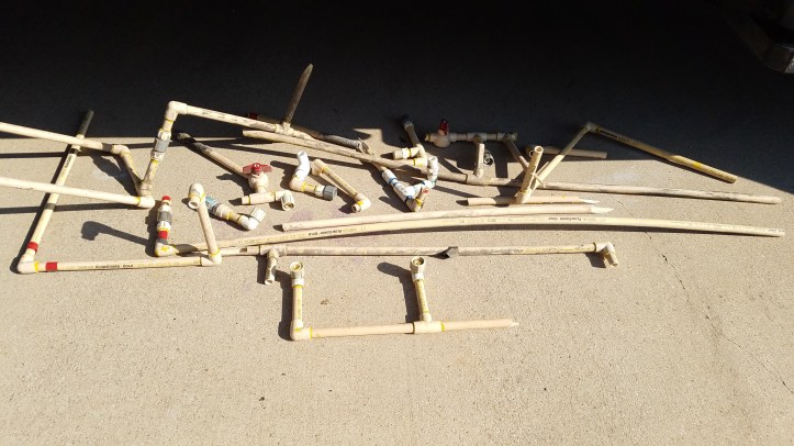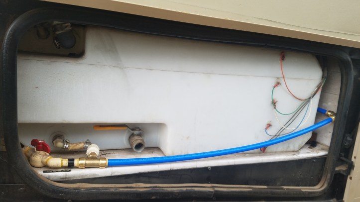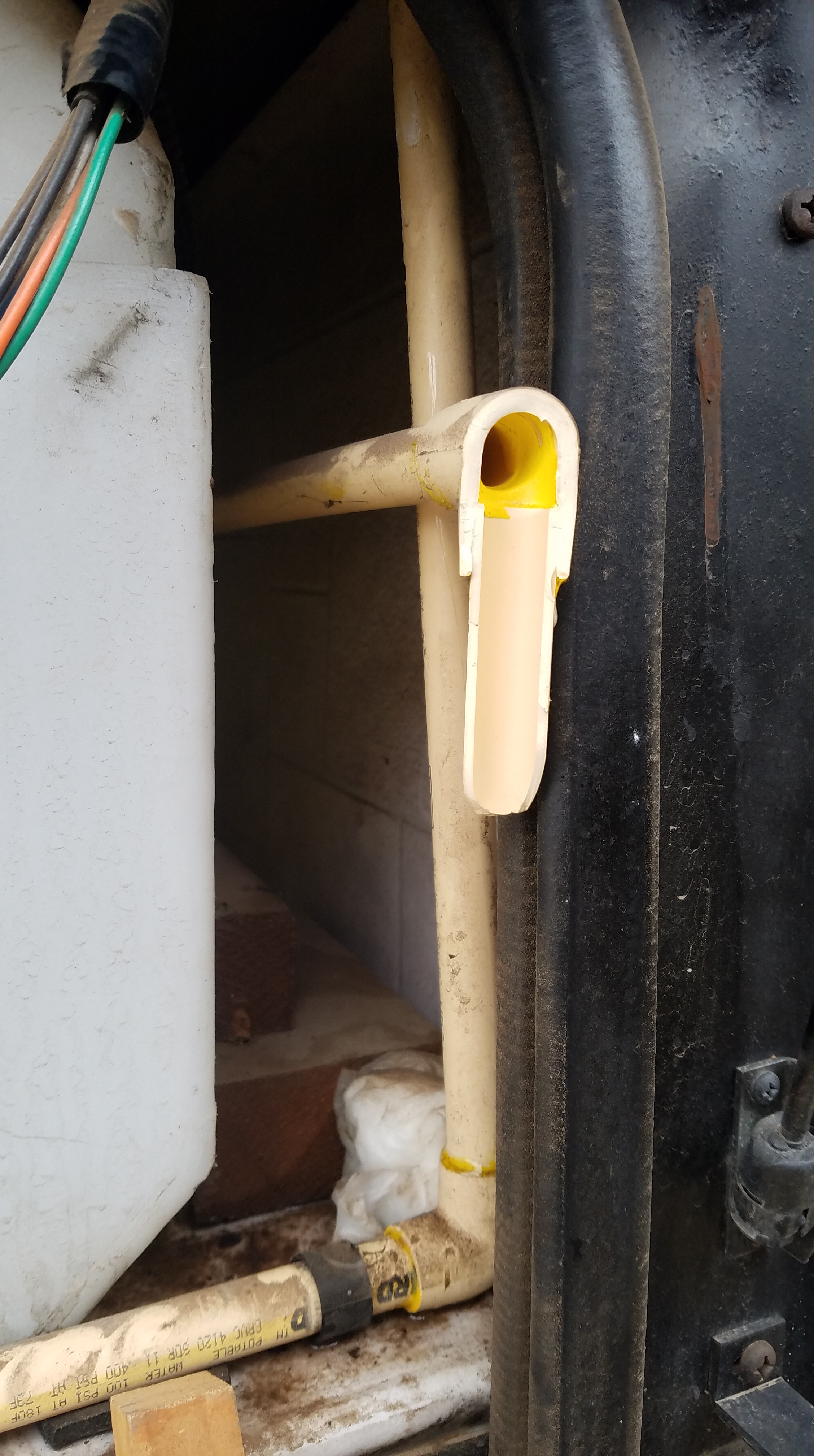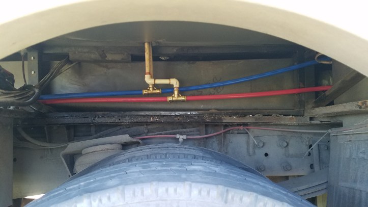 So our trip is delayed until I fix the pipes, little did I know how many hidden pipes were split. Each time I fixed the leaks I found, the next higher split in the system would spew water under the RV. The water, not moving ahead reminded me of Lynyrd Skynyrd since the RV couldn’t even get three steps so that song was going through my mind during repairs. It ended up taking almost a week to fix the mess I created. Some sections of CPVC pipe were long and there was no way to snake stiff replacement pipe through an assembled RV. I had to use PEX in some areas and use adapters between CPVC and PEX joints.
