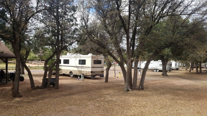 We’ve driven home from Albuquerque many times in one day but eight hours would be a long ride in an RV. We got to Payson, only 90 miles from home but I realized that it was going to be dark soon and there’s some steep grades and sharp curves I’d rather not take at night. So it was late afternoon and we decided to stop in at the Payson Elks Lodge to see if there are any RV spots open, sure enough they had a place with full hookups.