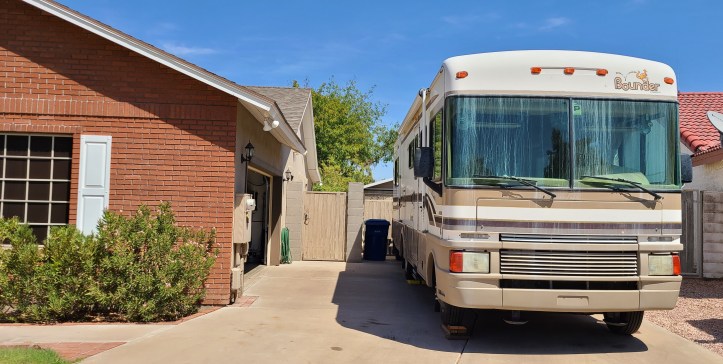 Except for a drive to get an emissions test in October 2019, the RV has sat in storage with an occasional startup & run to full operating temperature. It’s been that busy since May 2019. I’ve finally built up a week of vacation so it’s time to get maintenance done for our next trip.
