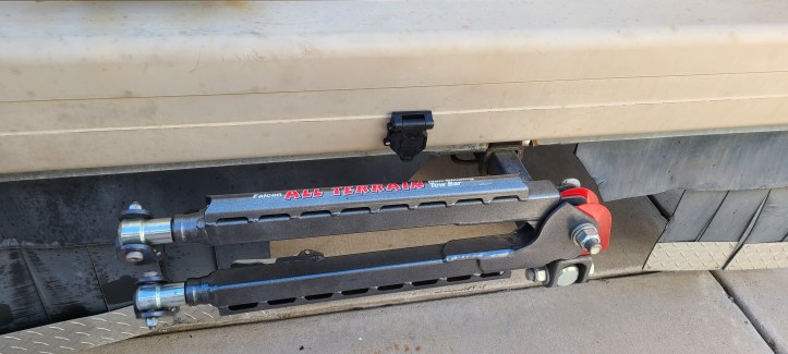 I’ve been gritting my teeth every time I drive the RV into a strip mall parking lot or transition from pavement to a dirt road. With such a long overhang, I constantly hear the 7-pin trailer plug dragging on the pavement or gravel, wondering when the plug was going to get yanked out.