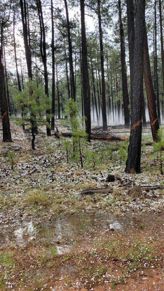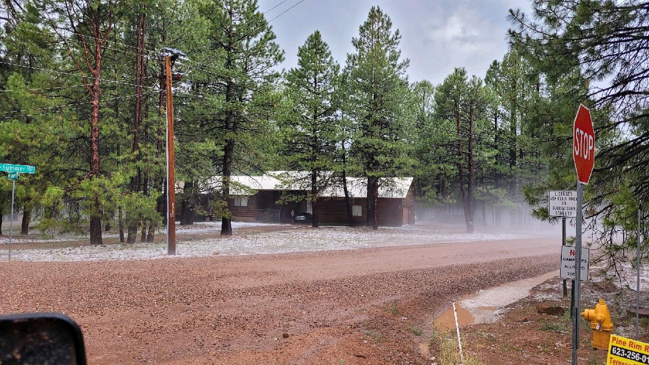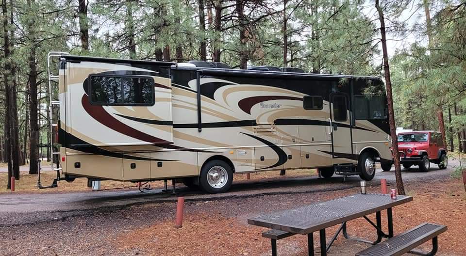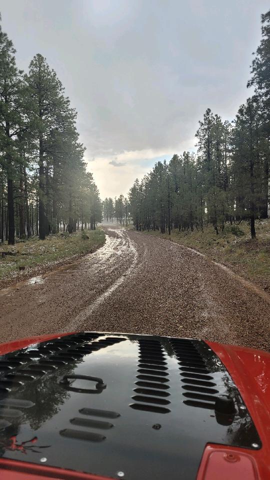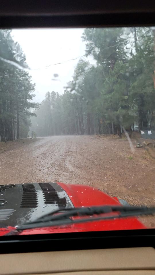 Amazingly they got the tires mounted, balanced and installed in about 45 minutes and we were back on the road before the mass crowd of campers began heading out of town. We got up to Canyon Point and the site I was hoping for most was still available. Over the weekend we got to know the new RV, took the Jeep out on the fire control roads in and around the town of Forest Lakes. Some storms rolled in with some showers, some hail and temps dropped from mid 70’s down to the low 60’s, I couldn’t have asked for better weather with 110-115 at home!