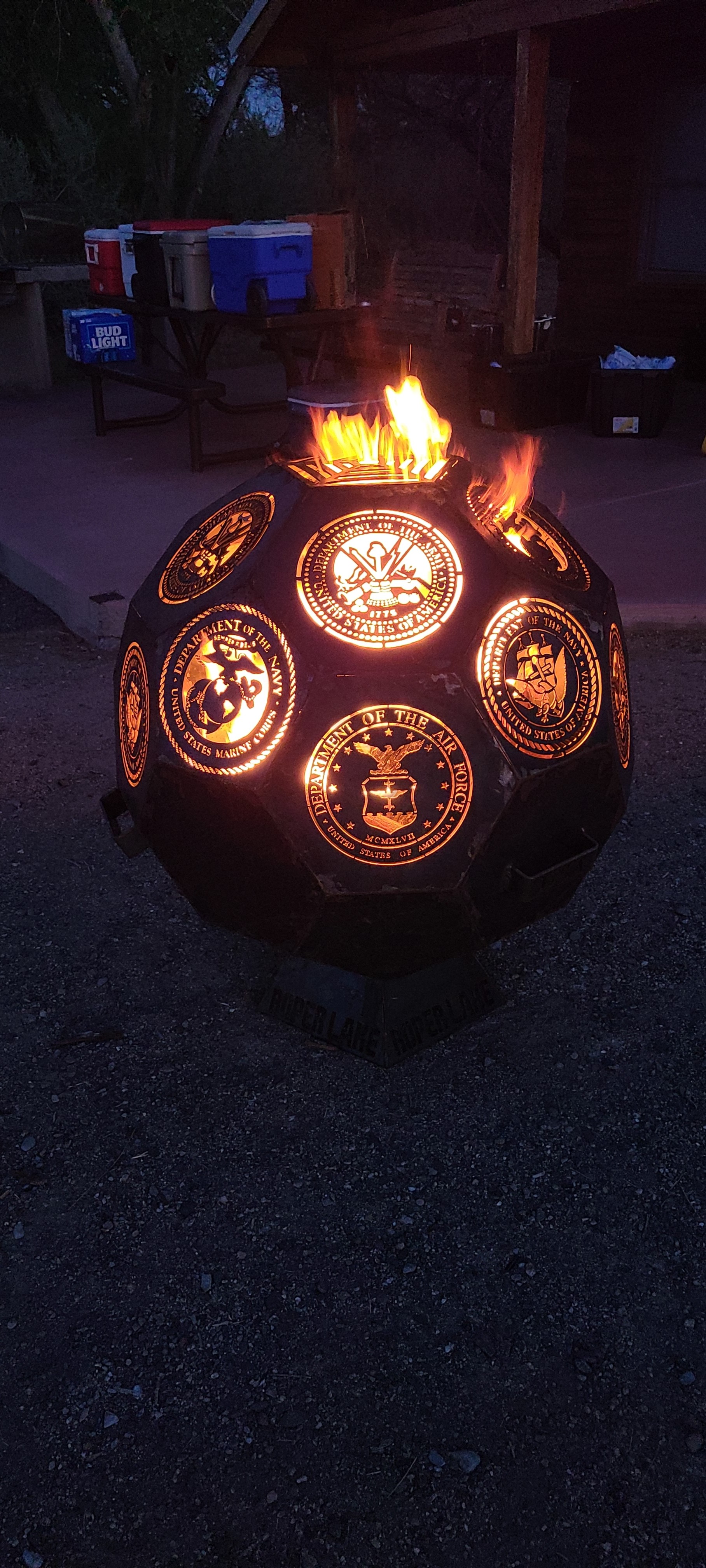 One of the many raffle prizes this year is a big fire pit with logos of all the US Military branches, it looks so awesome with a campfire going in it. Several of us camp together quite often and have a really good system for cooking big meals. I lost count of how many breakfast burritos we made for the campers but the national commander was impressed enough to give us all his challenge coin.